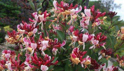 Далеко не все многолетние плетущиеся цветы для сада могут похвастаться таким оригинальным видом, как жимолость Брауна. Наивысшей декоративности она достигает в период цветения, однако и в остальное время куст красив благодаря крупным темно-зеленым листьям, густо расположенным на побегах длиной до 2-3 м.