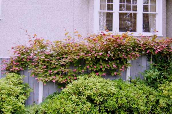 Очень красивое вьющееся растение, которое поражает не только соцветиями, но и необычными листьями. В длину актинидия может достигать двадцати метров, ее листва очень густая и объемная. В период цветения растение покрывается мелкими ярко-розовыми цветами, при этом, листья многолетника тоже меняются – они становятся сначала бледно-зелеными, а затем постепенно приобретают розоватый оттенок.