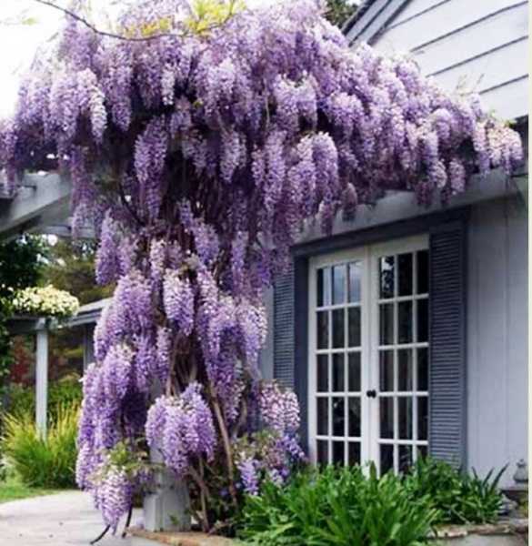 Высота глицинии часто превышает 50 метров, поэтому лианы необходимо периодически подстригать, придавая им нужную форму. Кроме наиболее распространенного фиолетового оттенка, встречаются цветы голубого и оранжевого тонов.