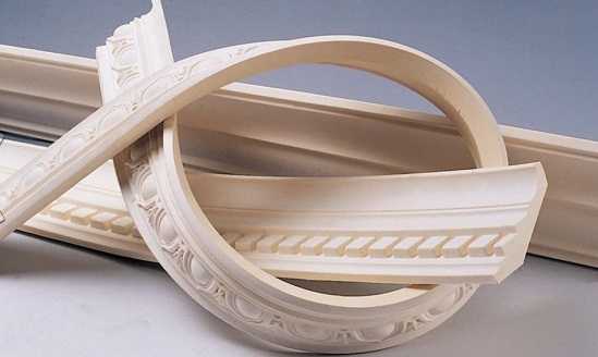 Важно: не все полиуретановые галтели могут похвастаться гибкостью. Некоторые из них, особенно – широкие и массивные модели так же плохо сгибаются, как и обычные детали из пенопласта или пластика.