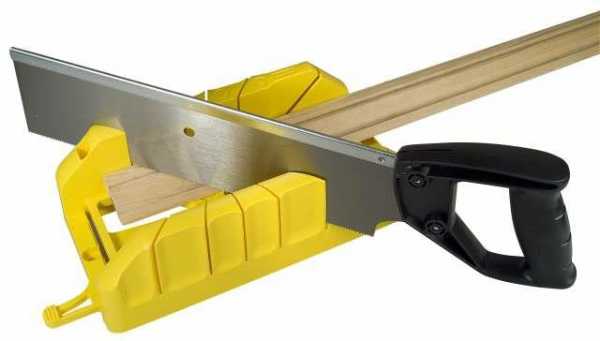4. Чтобы углы плинтусов при соединении идеально совпадали, рекомендуется их подкорректировать с помощью инструмента – стусла. Таким образом, две планки необходимо обрезать под углом в 45 градусов, как оптимальный вариант.