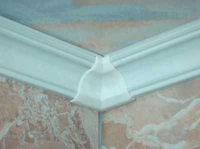 - Стыки на внешних углах потолочных плинтусов можно оформить специальными пластиковыми уголками.