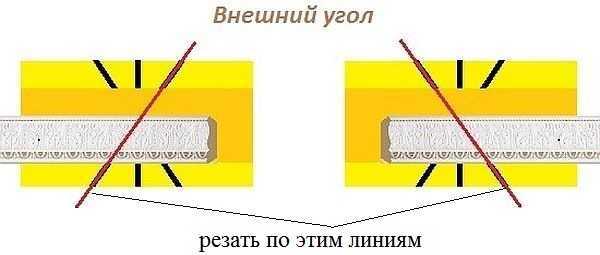 Как правильно отрезать потолочный плинтус под углом в 45°