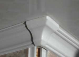 Если остались погрешности, например, щель между галтелями, выручит шпаклевка, герметик. Состав заполнит пустоту без ущерба внешнему виду потолочного плинтуса.