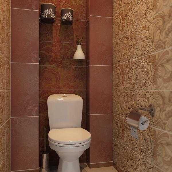 Представленные на фото варианты декорирования «сложных» помещений (маленького туалета в «хрущевке») помогут вам выбрать плитку с подходящим узором и цветом, и сделать в помещениях ванной или туалета вполне профессиональный ремонт, выполненный своими руками.