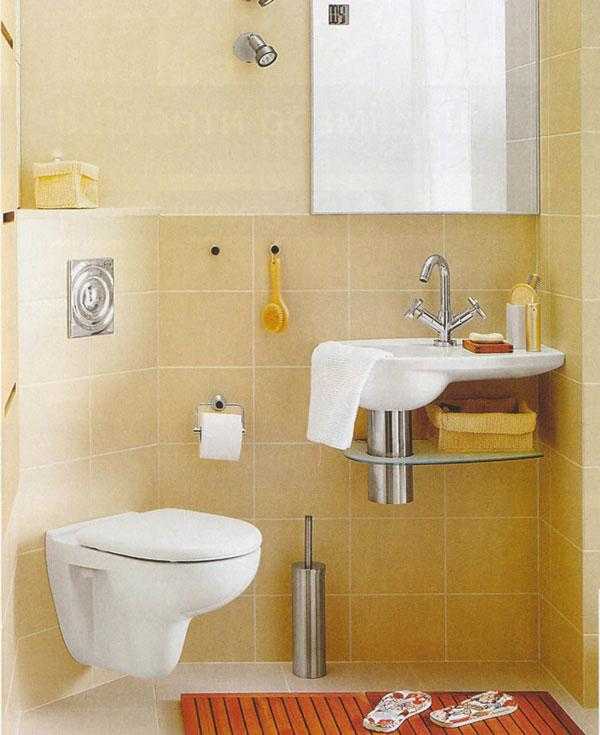 Другими подходящими для маленьких туалетов цветами являются холодные светлые оттенки – лимонный, белый, сиреневый и т.д. Допускается сочетать несколько цветов, но без явного контраста.