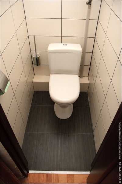 Маленькие плитки (10х10 см) хорошо смотрятся в небольшом туалете, но линии затирки иногда дают не привлекательный эффект.