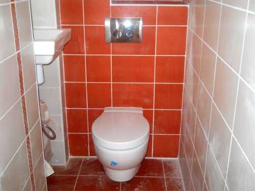 Небольшой туалет выглядит лучше с плиткой небольшого размера. В таком помещении стоит избегать большой плитки (60х30 см), она сделает комнату карликовой. Но если ее удастся положить без обрезки, то результат может быть впечатляющим.