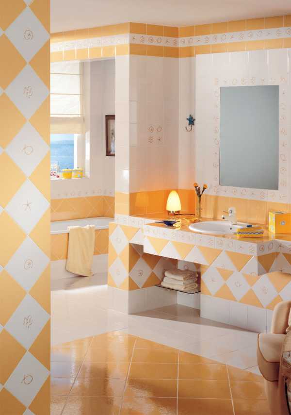 На отдельные плитки может быть нанесен узор, связанный с природными или морскими мотивами. Их можно использовать для отделки бордюра или для панно на большую стену.
