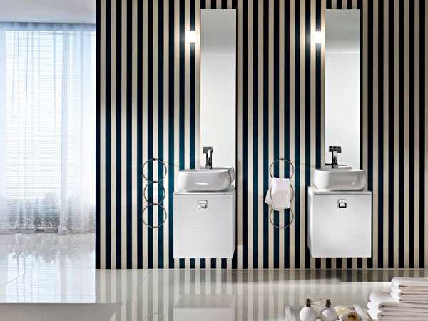 - Сочетание разных цветов. Контрастный цвет плитки в ванной поможет расставить акценты в интерьере. Вертикальные полосы зрительно расширяют пространство, дела помещение более просторным. А если добавить в отделку стен зеркальные плитки, новыми красками заиграет даже самый простой кафель.
