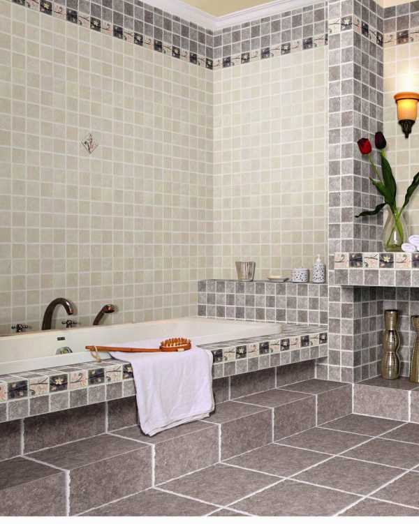 Это позволяет сделать рациональный выбор плитки для ванной, потому что требования к стойкости по отношению к химическим и механическим воздействиям у кафеля для стен или потолка в ванной комнате намного ниже, чем у пола.