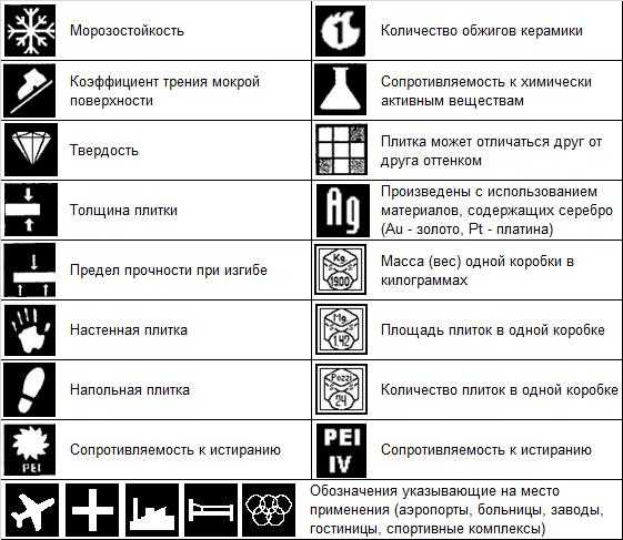 Это просто – на упаковке нанесены символы, означающие, для чего нужен тот или иной кафель:
