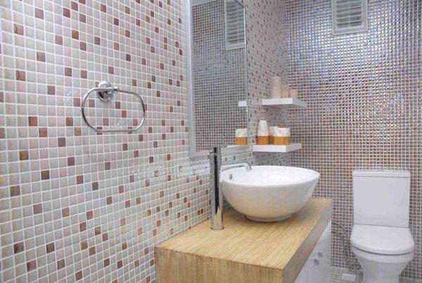 Дизайнеры советуют для ванной комнаты небольшого размера выбирать материал среднего размера. Так, если он имеет форму квадрата, то его стороны должны быть 20х20 см, а если прямоугольника — то 20х30 см.