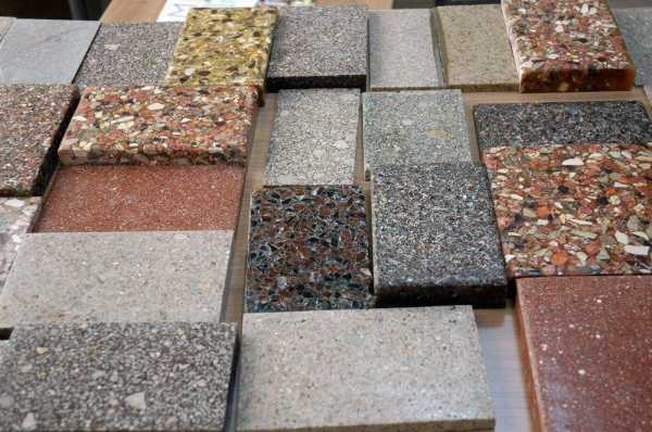Во время высыхания бетона, но пока он еще окончательно не отвердел, в поверхность плиток можно вдавить стеклянную, керамическую или мраморную крошку – получится красивая мозаика.