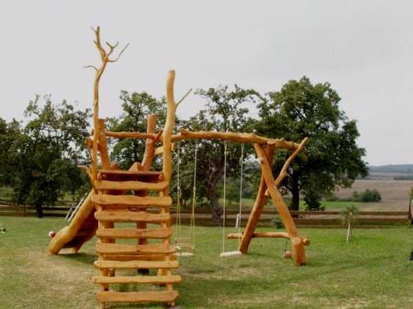 Что касается древесины, то из нее в основном сооружают элементы детских площадок – горки, качели, лестницы, домики. Завершающий этап строительства – окрашивание всех элементов площадки подходящей краской, которая выдерживала бы атмосферное влияние.
