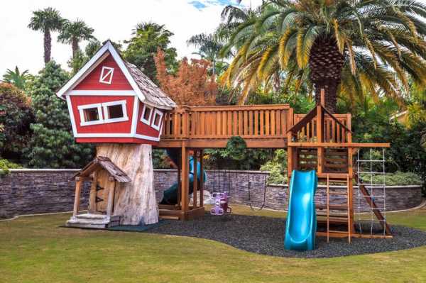 - Деревянный или пластиковый дом — прекрасное место для игры под бдительным оком родителей.