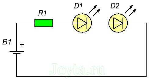 Следующий пример будет касаться параллельного соединения светодиодов, так как показано на следующем рисунке: