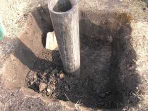 - В обсадной трубе не должно быть отверстий. У нашей же трубы было очень много насверленных дырок. Так как взяли в качестве обсадной трубы то, что было под рукой.