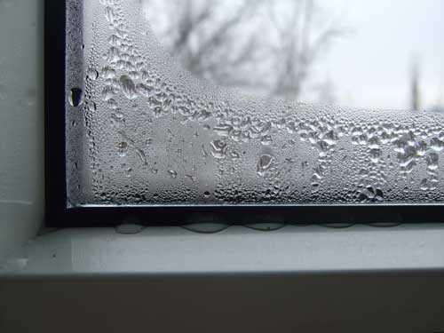 Теперь такого источника вентиляции у нас нет, и, стало быть, влажность воздуха все время растет. В помещениях всегда присутствует определенное количество водяного пара (влажность) и при определенной температуре он становится настолько густым, что начинает оседать на окнах.