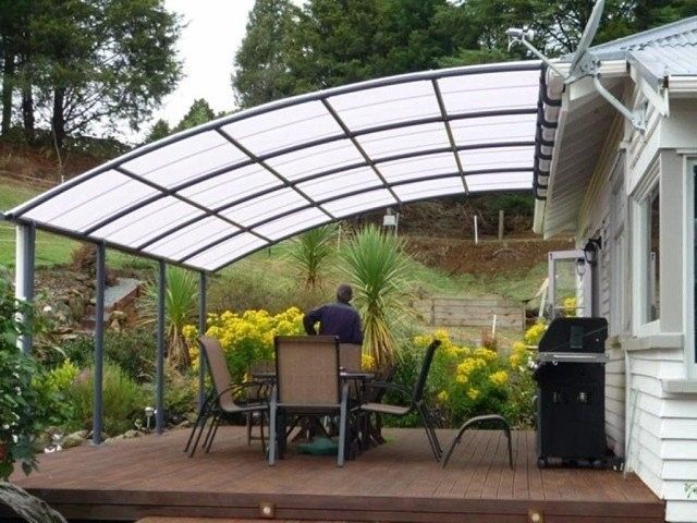 Навес защищает от дождя и снега не только автомобиль, но и въездное пространство, не занимает лишнего места внутри участка.