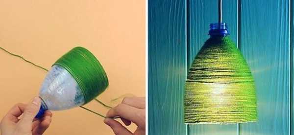 Вначале следует определиться с высотой плафона. По стенкам бутылки сделать отметку маркером, которая соответствует размеру светильника. По периметру в месте отметки наматывают плотно несколько витков натуральной нитью, завязывают узел и обрезают кончики. После этого хорошо смазывают нить горючей жидкостью и поджигают спичкой. После того как нить перестает гореть, бутылку быстро опускают в холодную воду. Стекло от разницы температур трескается в месте горения нитки.