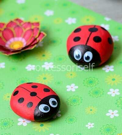 Не требуется наличие таланта художника, чтобы раскрасить небольшие камни акриловыми красками, превратив их в божьих коровок, пчелок, собачьи мордочки и просто яркие пятнистые аксессуары.