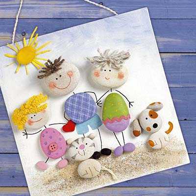 Деткам очень понравится мозайка из цветных камушков на гипсовой или глиняной основе. Ее очень интересно выкладывать, а результат получится ярким и нарядным.