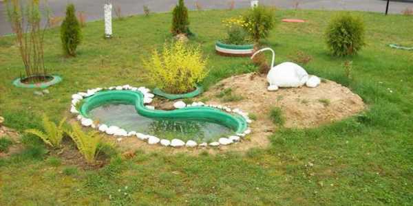 - Вначале продумывается конфигурация будущего русла и выкапывается углубление полукруглой формы.