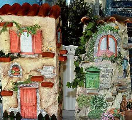 Можно сделать совсем маленькие домики из тех голышей, что мы обычно собираем на пляже у моря. Вряд ли их будет видно на клумбе, но они чудесно будут смотреться в цветочном горшке в комнате или на балконе.