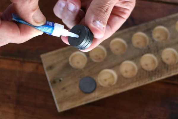 Отличную полку для садовых инструментов и ножей сделать очень просто. С обратной стороны деревянной планки сделайте отверстия для магнитов и приклейте их довольно часто. Теперь все металлические садовые инструменты всегда будут под рукой и не потеряются.