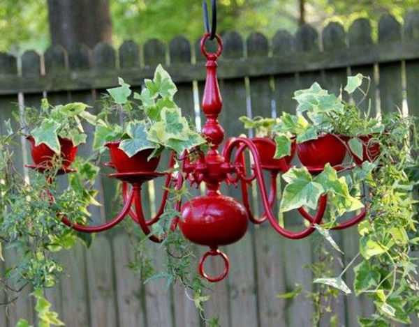 Старая люстра пришла в негодность? А если приспособить ее для посадки вьющихся растений? Например, вот так: