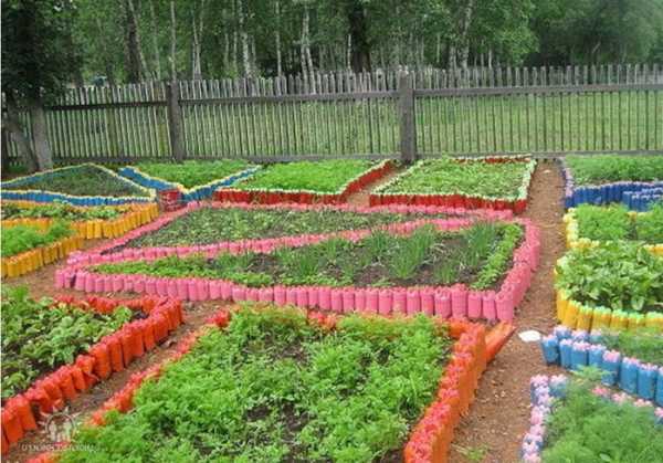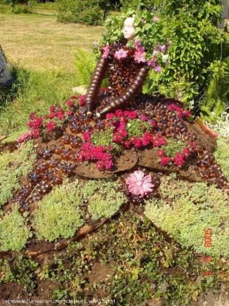 Оригинальные и яркие клумбы в саду из пластиковых бутылок своими руками