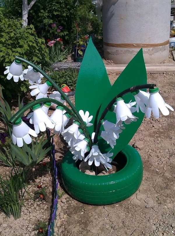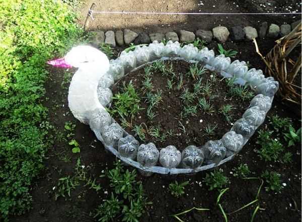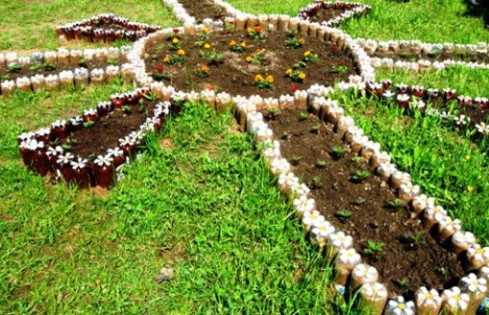 Декор клумбы из пластиковых бутылок