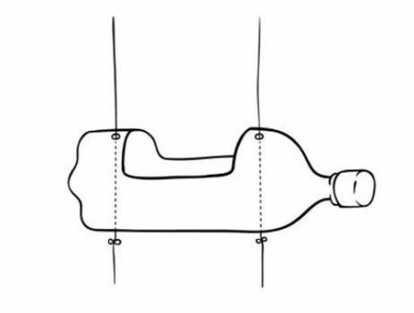 - Вырезаем заготовку для шеи ослика из средней части бутылки. На виде сбоку она имеет форму трапеции. На боковых сторонах детали оставляем по два выступа, за которые будет крепиться шея.