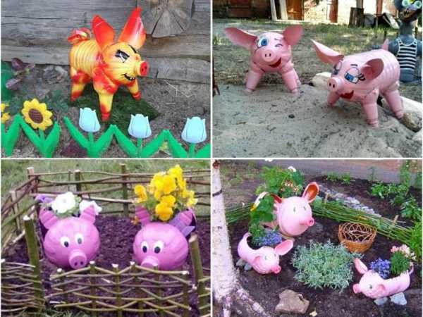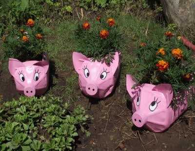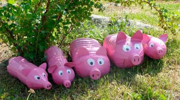Проще всего из пластиковых бутылок делать различных животных. Например, вы можете сделать вот таких вот ярких розовых поросят и поставить из в вашем саду для украшения: