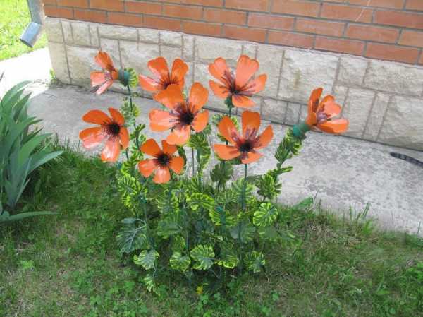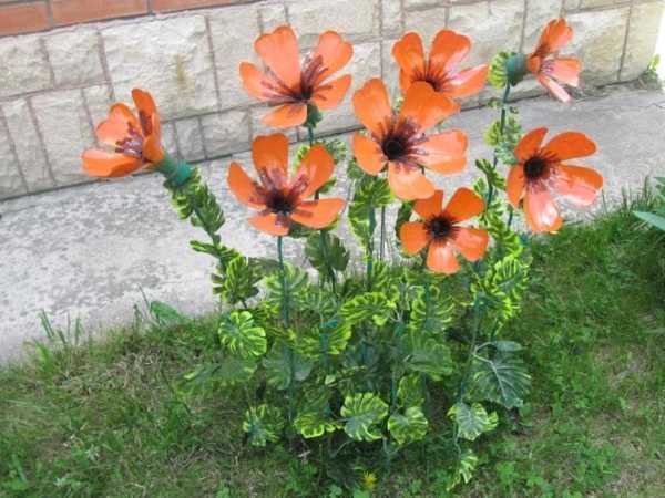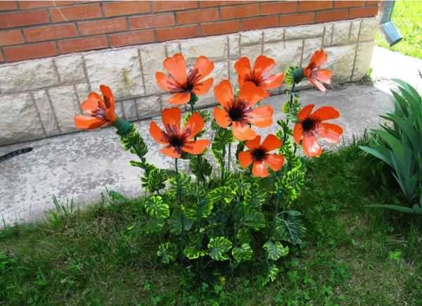 Почему бы не украсить дачу цветами? И вовсе не обязательно живыми, хотя это было бы отличным вариантом. Но в добавок можно добавить и различные цветы из пластиковых бутылок. Например, очень легко сделать из них маки — вот вам краткая пошаговая инструкция: