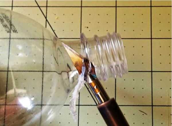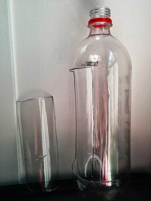 - У емкости для головы срезаем горлышко.