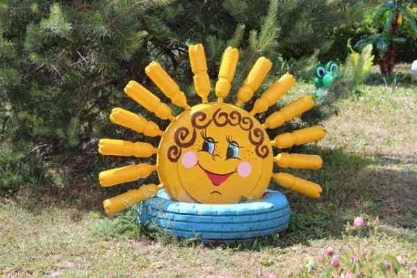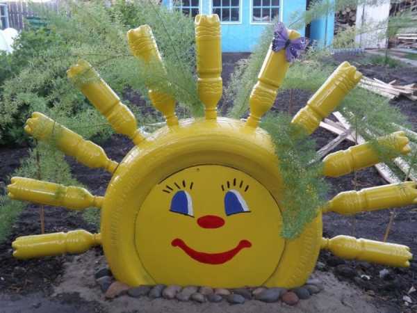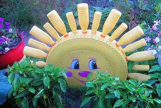 Солнце из бутылок и покрышки