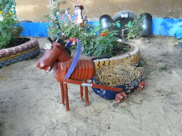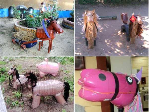 Землю с помощью лошадей на даче давно не пашут, а вот присутствие их фигурок уместно и желанно. Корпус коня чаще всего делают из пятилитровых баклажек, а ноги шею и мордочку – из тары поменьше. Лошадь очень похожа на осла, так что при ее изготовлении можно воспользоваться инструкцией по сборке ослика, которая следует далее.