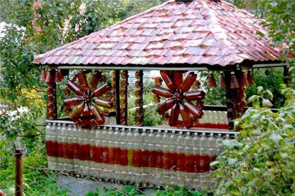 Беседка из пластиковых бутылок на даче – изящно и удобно