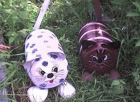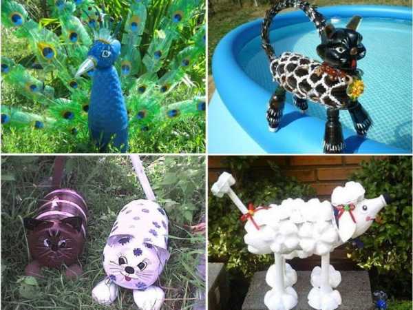 Веселые фигурки животных и людей для сада из пластиковой тары