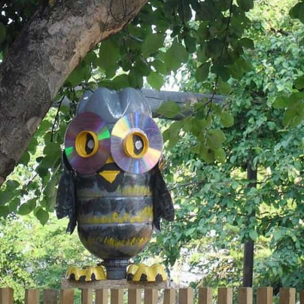 Настоящим животным, птицам и насекомым в саду не все рады. Действительно, кому понравится, когда в огороде роется крот, забредает живой волк или медведь, летают совы или нападают комары и осы. Но вот яркие поделки из бутылок запросто могут украсить вашу дачу. Больше идей для животных и птиц из пластиковых бутылок в этой статье.