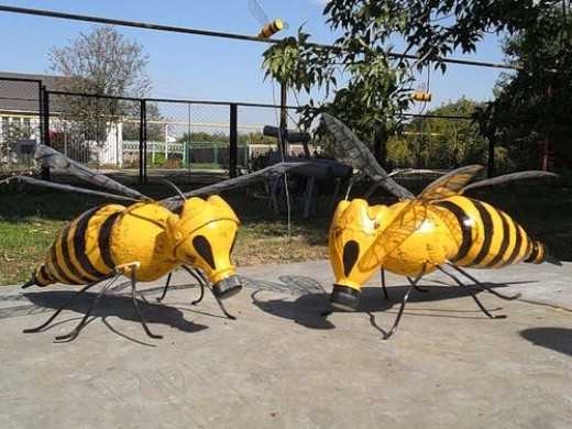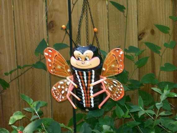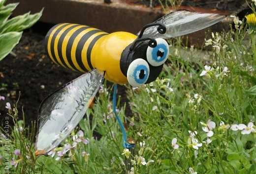 Из чего еще можно сделать божью коровку для декора сада — читаем в этой статье. Кстати, также она легко делается из пластиковых ложек — потом можно украсить ими деревья или забор. Другие насекомые, которых можно сделать из бутылок — это хищные осы и пчелы, яркие стрекозы или бабочки, как сделать которых мы сейчас расскажем.