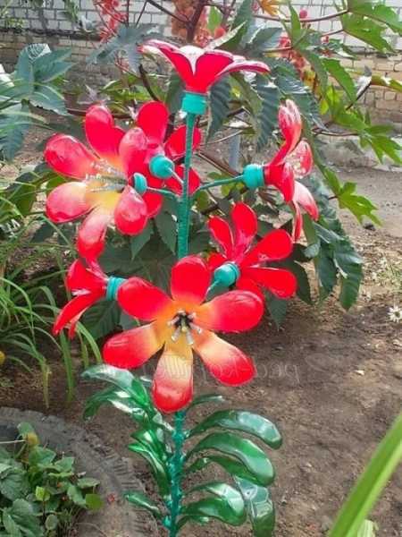 Яркие поделки и украшения из бутылок во дворе