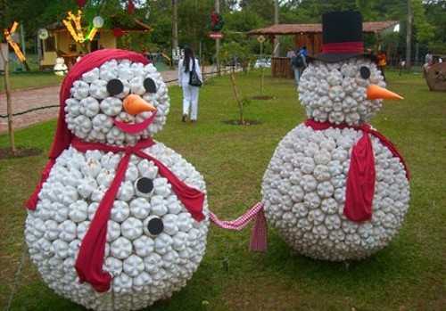Также неплохая идея для тех, кто зиму любит больше, чем лето — почему бы не сделать таких вот долговечных снеговиков, которые не только привлекут внимание летом, но и украсят ваш сад зимой?