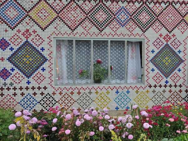 Домик из бутылок и дерева