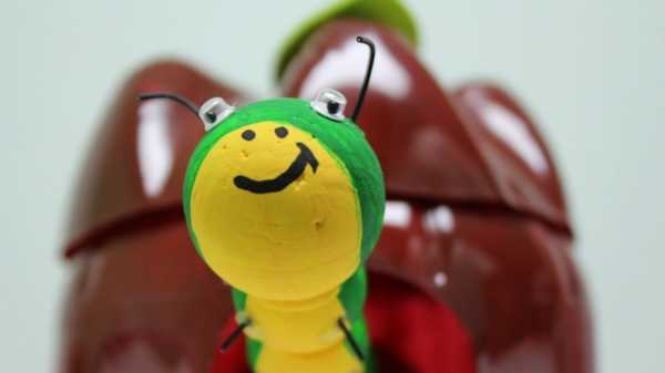 Гусеница в саду и огороде вполне уместна. В таком исполнении в бабочку она не превратится, но и навредить не сможет. Сделать насекомое можно из донышек, крышек и корпусов пластиковой тары. Проще всего последовательно собрать верхние части ярко зеленых бутылок. Внутри может быть проволока, которая загнута по обеим сторонам фигурки.
