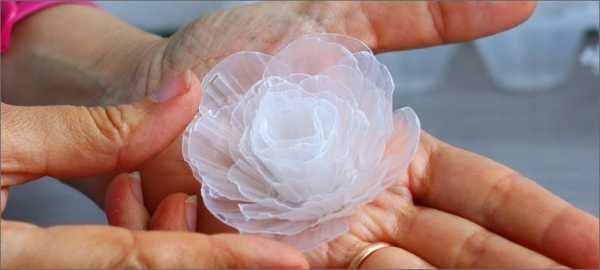 Если же взять только донышко пластиковый бутылки, то из него будет несложно сделать симпатичный цветочек.