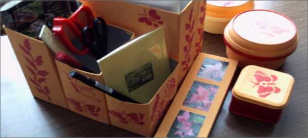 А теперь о серьезном. Как сделать так, чтобы на столе всегда был порядок? Конечно же, установить органайзер! Можно, конечно, его купить. Но намного интереснее сделать его своими руками все из тех же незаменимых коробочек. И украсить по своему вкусу.