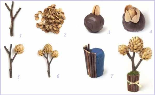 Скорлупки из фисташек могут послужить прекрасным материалом для создания различных инкрустаций или даже целых картин. Для этого нужны клей, подходящие краски, веточки с деревьев, основание, и, собственно, скорлупки, которые, как мы надеемся, теперь вы не будете выбрасывать.